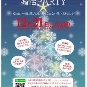 今年最後の婚活パーティー開催致します 今年残り僅かですが、まだまだ諦めないで下さい Xmasに一緒に過ごせる、素敵な方との出会いを 期待して、婚活パー…