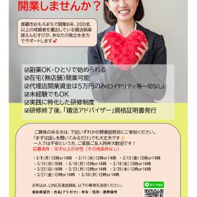 人も自分も幸せになれるお仕事 ~結婚相談所を開業してみませんか?~ 県内在住の30歳以上の女性の皆さんへ。 「誰かの幸せを応援する仕事をしてみたい」「…