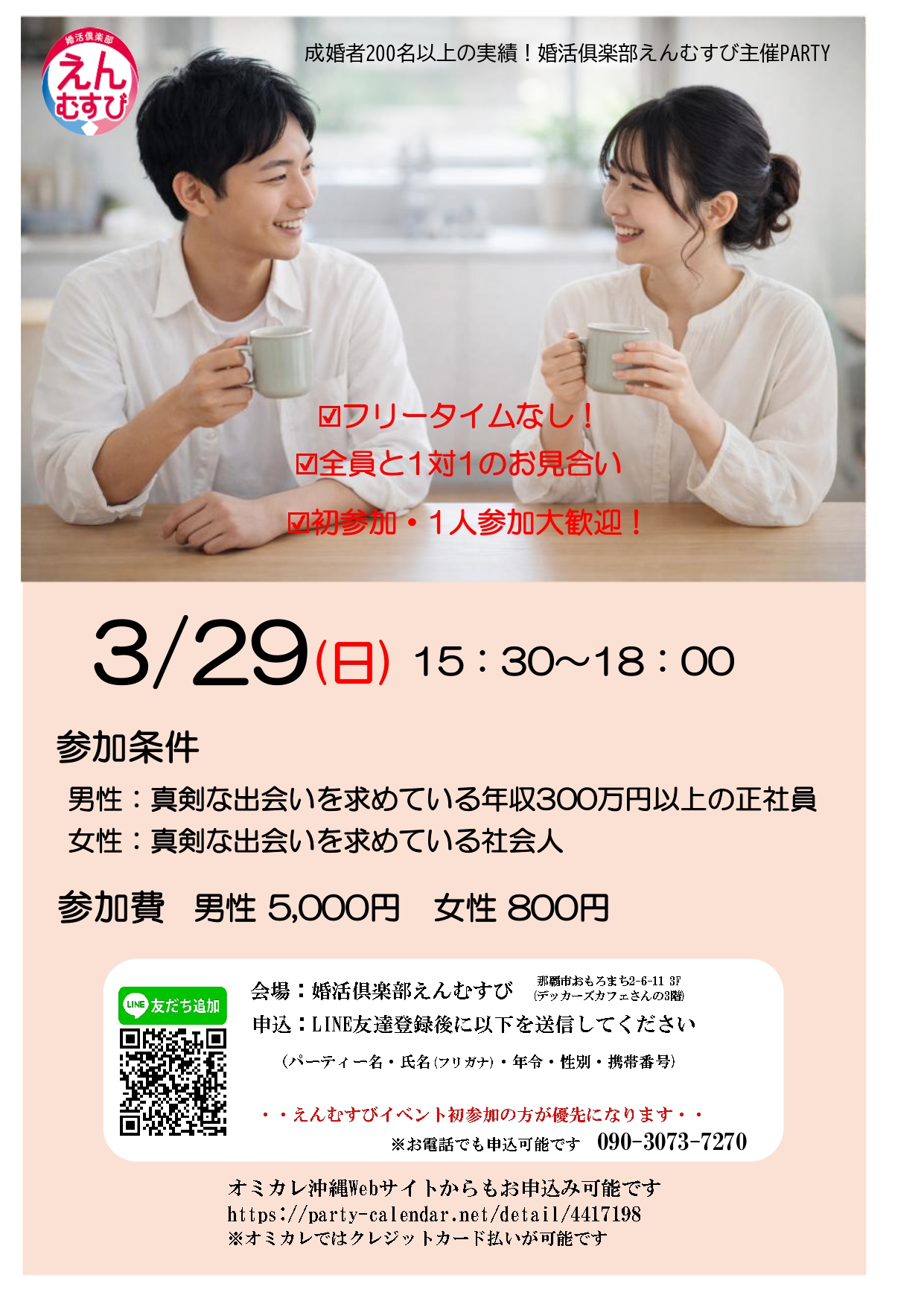 参加費:男性5,000円 女性800円