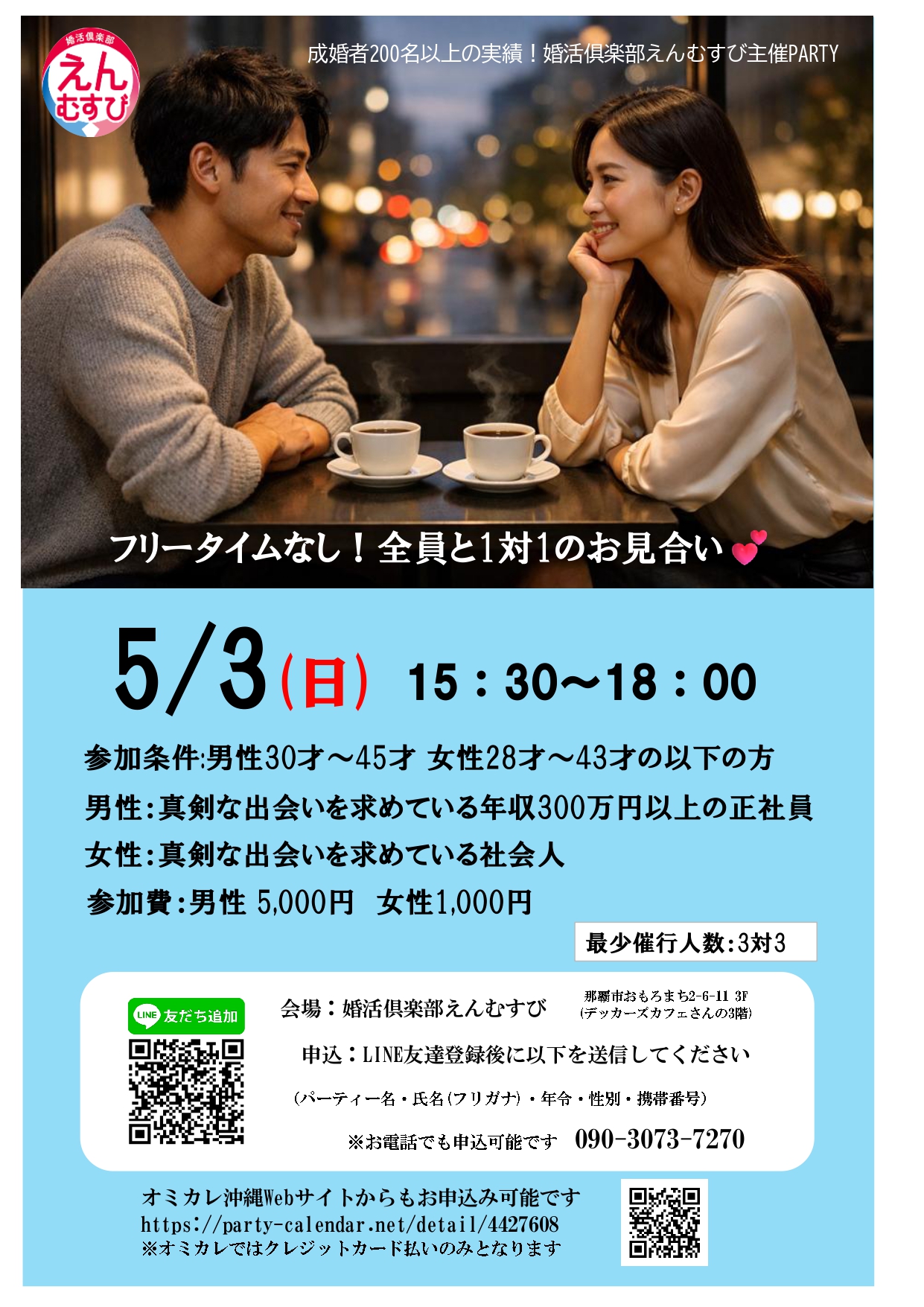 お申し込みは、えんむすび公式LINEまたはお電話で