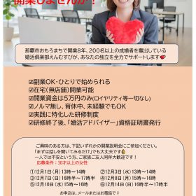 人も自分も幸せになれるお仕事 ~結婚相談所を開業してみませんか?~ 県内在住の30歳以上の女性の皆さんへ。 「誰かの幸せを応援する仕事をしてみたい」「…