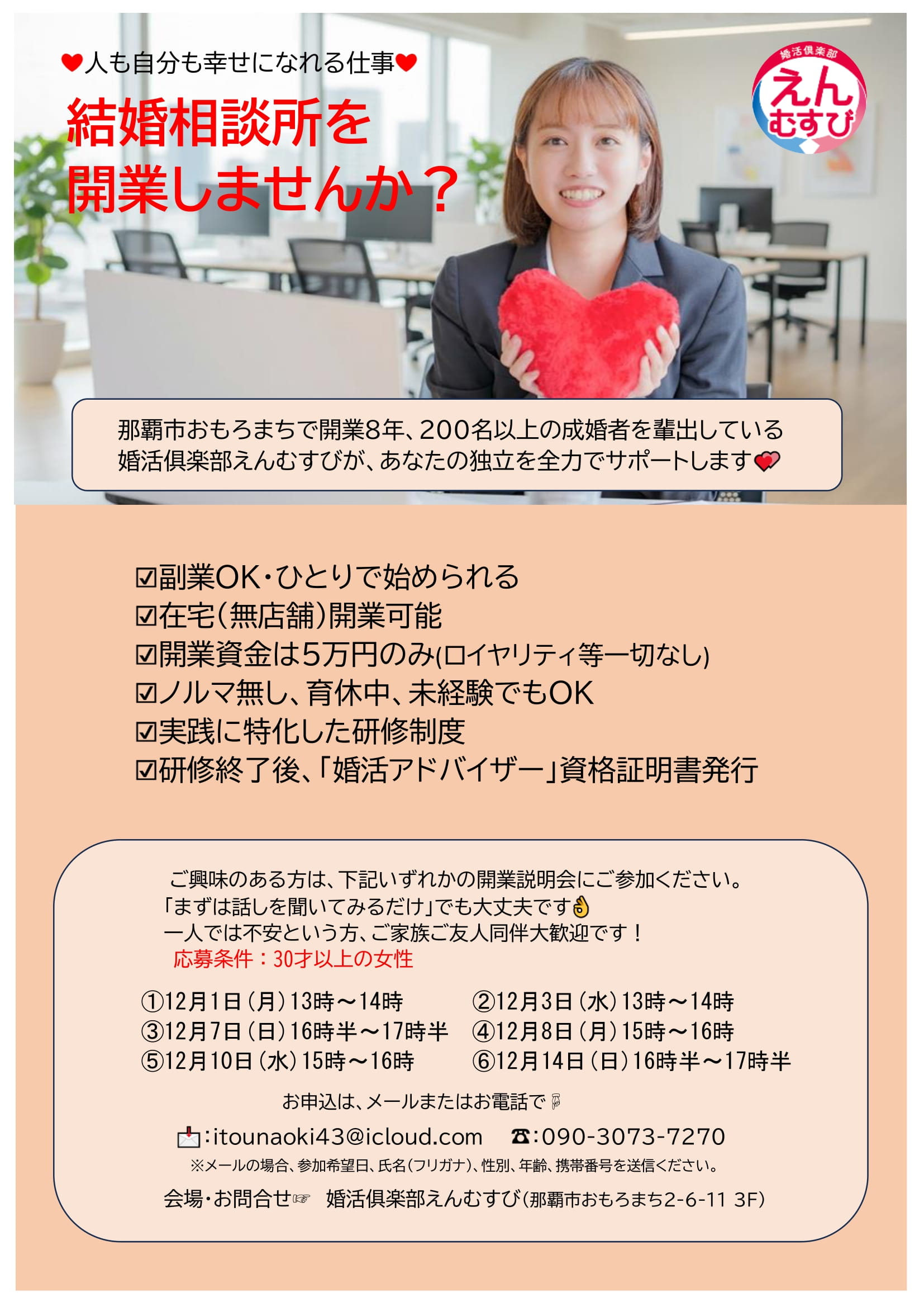 そんな婚活倶楽部えんむすびが、これから結婚相談所を始めてみたい方の